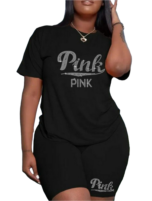 RHINESTONE PINK LETTER PRINT SHORT SET