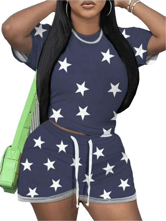 This two-piece short set features a trendy star print design and is made from high-quality...