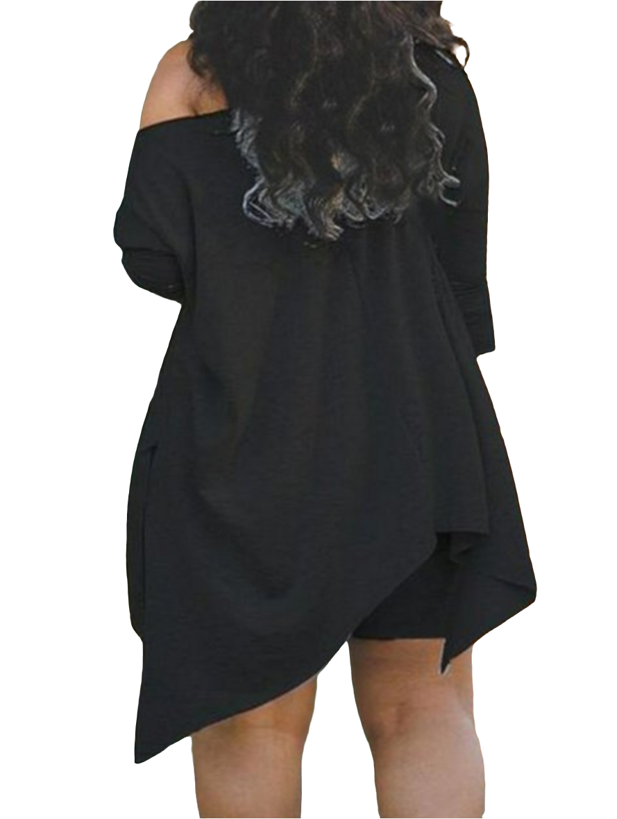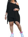 Elevate your casual style with this plus size one shoulder asymmetrical short set. Made from high-quality polyester material, it features a drop shoulder design, half sleeves, and a conventional collar neckline. Perfect for a comfortable and stylish look.