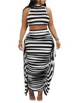 ROUND NECK VEST STRIPED SLEEVELESS TWO-PIECE SKIRT SET