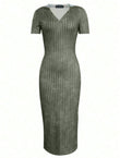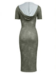 This bodycon dress boasts a classic casual style with its short sleeves and solid color design. Made with high-quality fabrics, it features a trendy hooded collar for added flair. Perfect for any occasion, the dress offers both comfort and style. Upgrade your wardrobe with this must-have piece.
