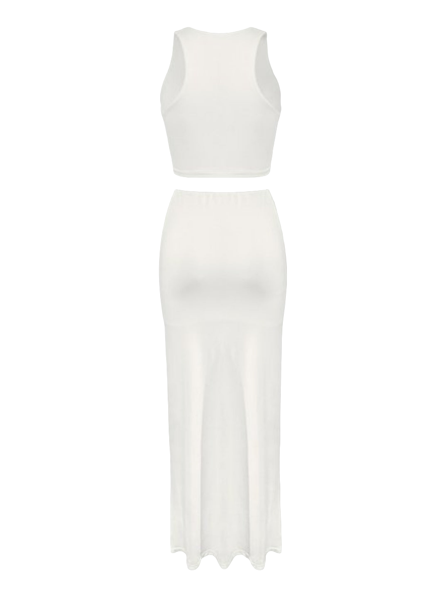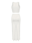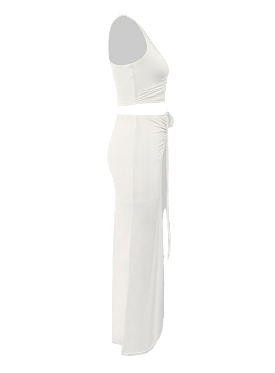 This elegant TWO-PIECE skirt set is perfect for any casual occasion. Made of high-quality MODAL material, it features a solid white color and a stylish stirred sleeveless design. The round neck adds a touch of sophistication, while the DRAWSTRING adds both comfort and style. Elevate your wardrobe with this beautiful set.