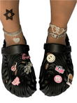 "Add a touch of modern style to your wardrobe with our METAL LETTER DECOR CUT OUT SLIPPERS. These chic flats feature sleek metal decorations and a comfortable 0-1 inch flat sole. Perfect for any occasion. Available now!"